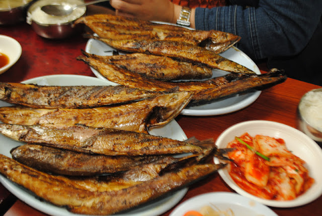Lepas habis bershopping di Dongdaemun kami nak gi makan ikan bakar pulak. Ingat tak pada hari -3 kami di sini pernah mencari kedai ikan bakar yg tidak jumpa tu. Balik guest house mcm tak puas hati...kenapa tak leh jumpa. Orang lain boleh plak jumpa. So, kami merujuk pada internet semula... blog orang lain pulak nak cari directions secara detail camana nak ke sana. Rupanya blogger tu pun tak jumpa jugak. Dia dibantu oleh oleh (i) - info guide yang berlegar-legar di area Dongdaemun ni. Akhirnya blogger tu dapat jumpa kedai ikan bakar ni.