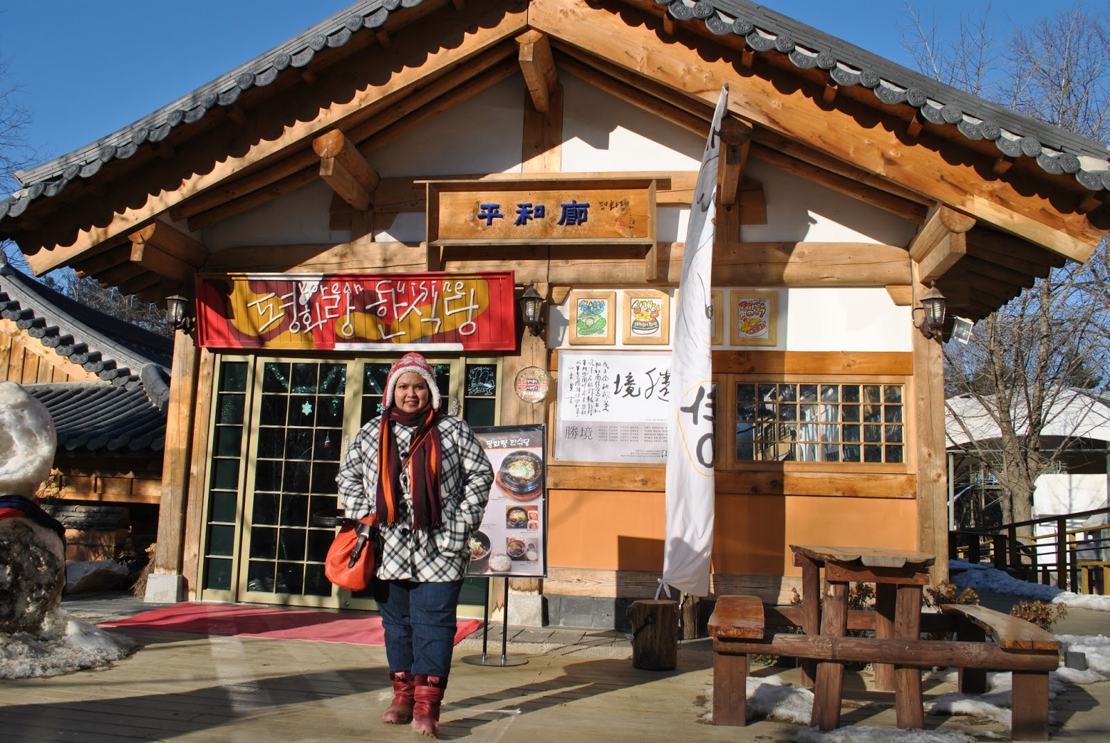 di sekitar Gapyeong Station kami berposing sebentar. Plan nak ambil bas...selain pergi ke Nami Island kami plan nak ke English Village dan Hanok Village....tapi tak jadi. Sebabnya...takut tak sempat dan tidak tahan cuaca yg sangat sejuk ini. Then, kami amik teksi ajer ke Nami Republic