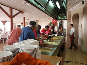 makanan buffet...semua beratur untuk mengambil makanan. Dulu trip aku ke Turkey memang susah nak dapat nasi...kami makan roti as makanan berat. Only certain restaurant ajer yg serve nasi. Tapi kali ni memang setiap restaurant akan sediakan nasi. Tapi nasinya agak berbeza sedikit....mcm nasi minyak. Roti pun ada....boleh makan dengan sup. Selalunya disediakan sup kacang parang. Sedap jugak. Dulu selalu makan sup pumpkin. Ikut musim agaknya.